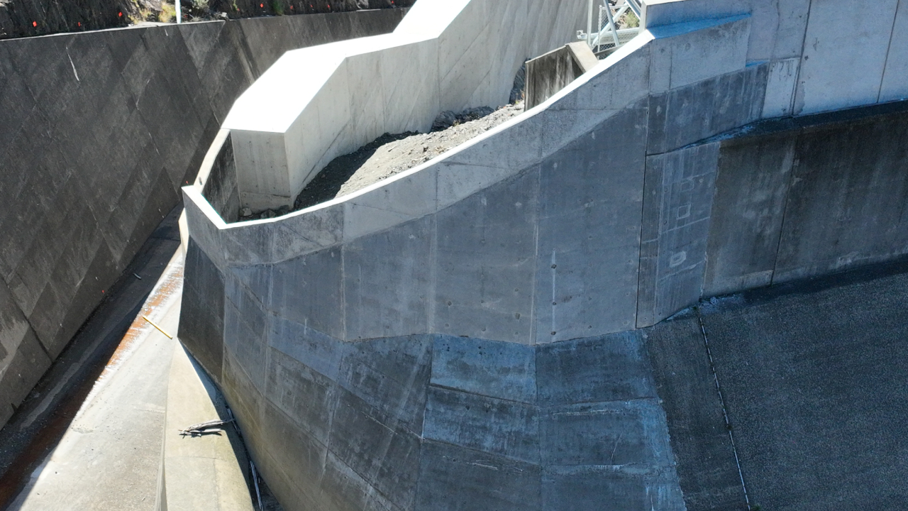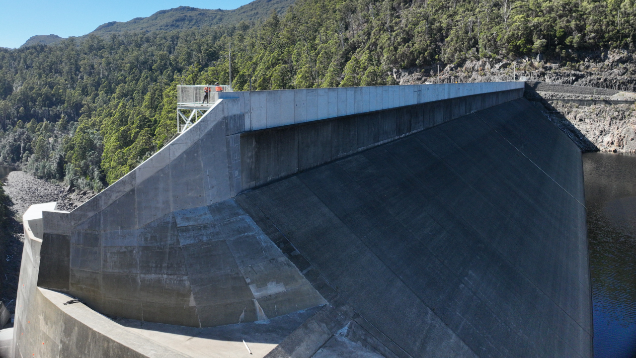 The aim of the project was to reduce the risk position of the dam for Hydro Tasmania, by providing additional flood protection, so the dam can safely pass floods of rarer frequency.